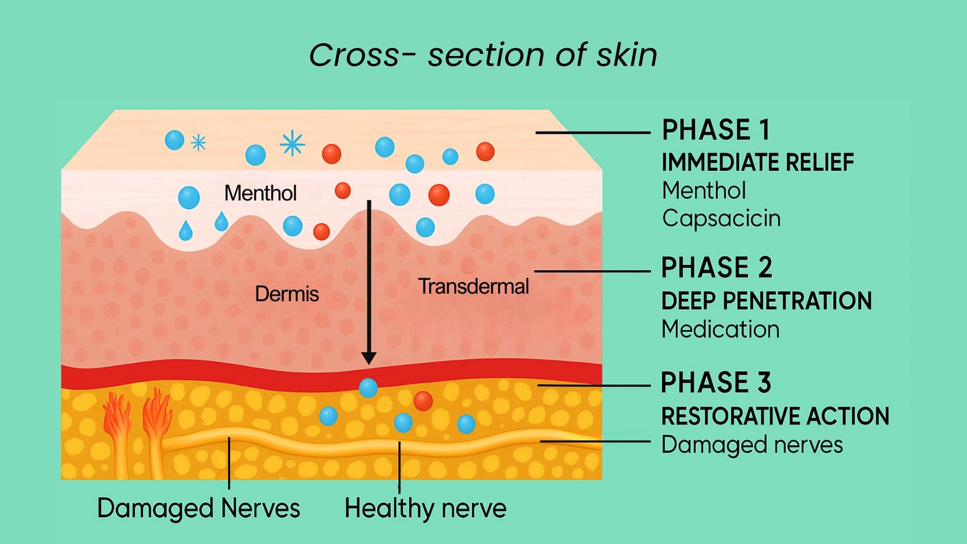 PHASE 2: DEEP PENETRATION - CapsaCare's unique Transdermal Delivery System ensures active ingredients penetrate beyond the skin's surface to reach damaged nerves directly.