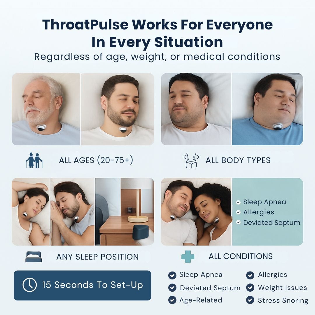ThroatTrainer™ is designed for anyone who snores or experiences sleep-breathing issues caused by weak throat muscles — regardless of age, weight, or medical history.